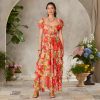 Feel your best in this flattering V-neck dress with contrast print details. Zipper back. Polyester. Hand wash. Imported. Sizes XS (0?C2). S (4?C6). M (8?C10). L (12?C14). XL (16?C18). Approx. 47.37l.