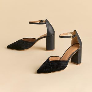 These coquettish. special occasion shoes feature a pleated velvet toe box. leather heel and ankle strap. Velvet. Spain. Exclusive. Euro whole sizes 36-41. 36 (US 6). 37 (US 7). 38 (US 8). 39 (US 9). 40 (US 9.5). 41 (US 10). 2.75 heel.
