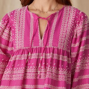 All-over embroidered stripes atop a brilliant hue can brighten any day. Cotton/linen. Hand wash. Imported. XS (0 to 2). S (4 to 6). M (8 to 10). L (12 to 14). XL (16 to 18). Approx. 35L.