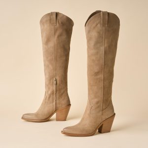 These luxurious boots with a tulip opening hit just below the knee and the soft leather can be scrunched if the wearer desires. Includes an inside ankle zip and side tabs for ease in pulling on and off. Leather or suede. Italy. Exclusive. Euro whole sizes 36?C42. 36 (US 6). 37 (US 7). 38 (US 8). 39 (US 9). 40 (US 9.5). 41 (US 10). 42 (US 11). Approx. 3.25 heel.