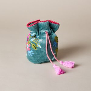 Covered in a colorful. exotic fabric. this Johnny Was jewelry box is as beautiful as the treasures it is meant to hold. Polyester over wood. 6 sq. x 2d.