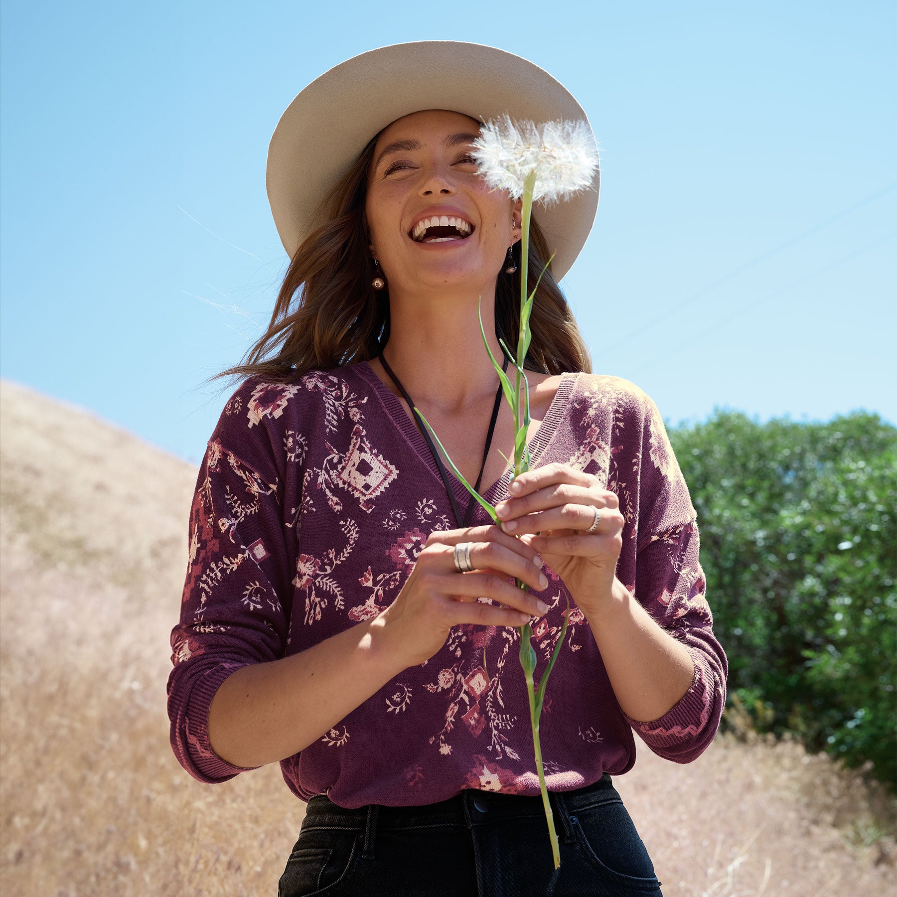 A new Sundance classic. with bandana/floral print front and back and hand-embroidered embellishment at the open V-neckline. Exposed seams. rib trim. relaxed fit. Cotton. Hand wash. Imported. Exclusive. Sizes XS (0?C2). S (4?C6). M (8?C10). L (12?C14). XL (16?C18). XXL (20?C22). Approx. 24l.