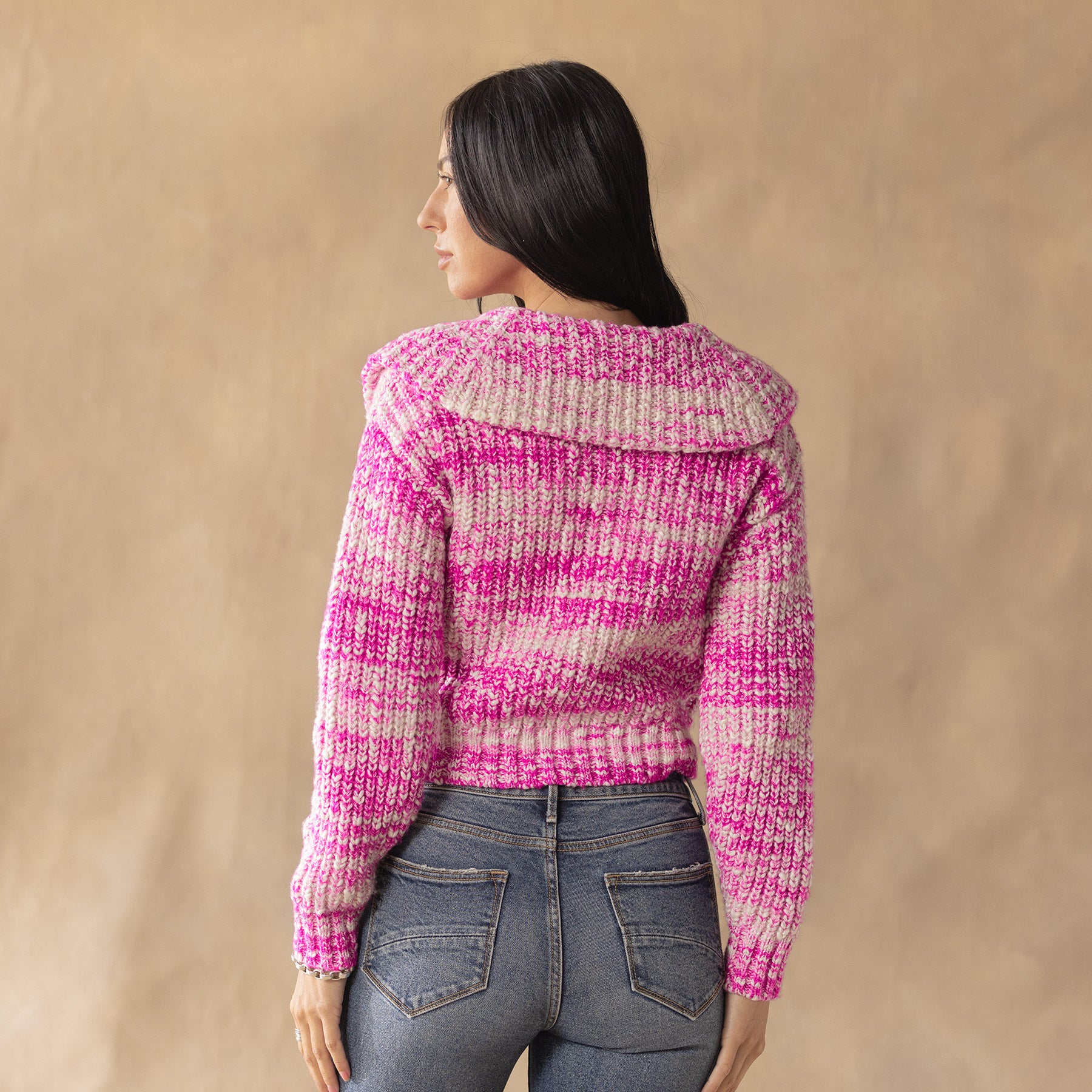 Our chunky. space-dyed slub cardigan keeps you warm and chic. with rib body. zip front. leather zipper pull. a generous. zip-through collar and feminine volume sleeves. Lots of texture and style. with transfer and pointelle details. welt pockets and rib trim. Acrylic/merino wool/pafafil. Hand wash. Imported. Exclusive. Sizes XS (0–2). S (4–6). M (8–10). L (12–14). XL (16–18). XXL (20–22). Approx. 19l.
